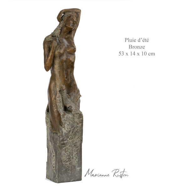Gracieuse et poétique, la sculpture de Marianne Ruston semble oublier la frénésie de notre temps pour privilégier celui de la méditation esthétique. Chaque oeuvre nous emmène en effet en un monde où règnent l'harmonie et la délicatesse.