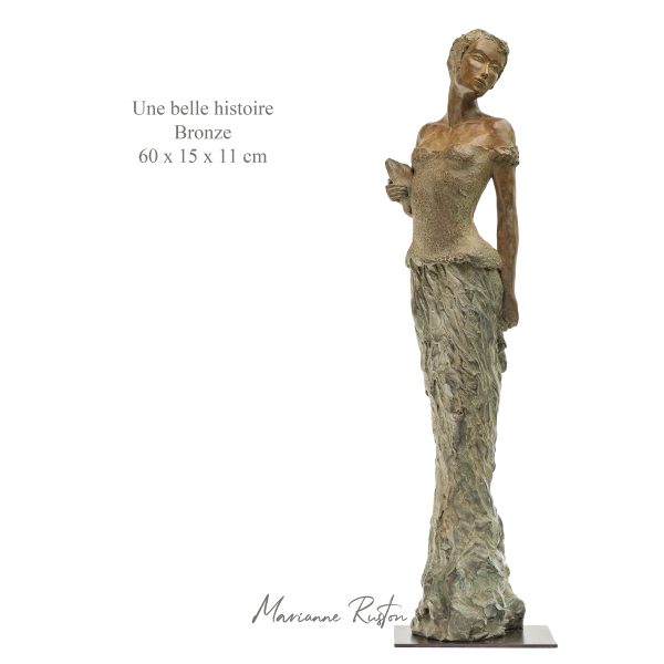 Gracieuse et poétique, la sculpture de Marianne Ruston semble oublier la frénésie de notre temps pour privilégier celui de la méditation esthétique. Chaque oeuvre nous emmène en effet en un monde où règnent l'harmonie et la délicatesse.